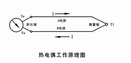 熱電偶分成兩種不同成分的導(dǎo)體,由導(dǎo)體兩端接合成回路。當(dāng)兩個(gè)結(jié)合點(diǎn)的溫度不同時(shí),會(huì)在回路中產(chǎn)生電動(dòng)勢(shì)。熱電偶就是利用這個(gè)工作原理進(jìn)行溫度測(cè)量的。熱電偶直接用作測(cè)量介質(zhì)溫度的一端叫做工作端(也稱(chēng)為測(cè)量端,如圖T1處),另一端叫做冷端(也稱(chēng)為補(bǔ)償端,如圖T0處);T0處接好后與補(bǔ)償導(dǎo)線(xiàn)連接到顯示儀表上,顯示儀表會(huì)指出熱電偶所產(chǎn)生的熱電勢(shì)。熱電偶實(shí)際上是一種能量轉(zhuǎn)換器!